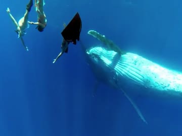 クジラと泳ぐ女性たち