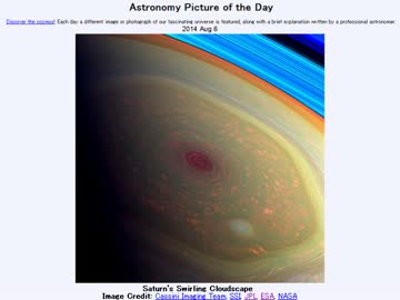 2014年 8月6日 「土星の渦巻く雲景色」-Astronomy Picture of the Day