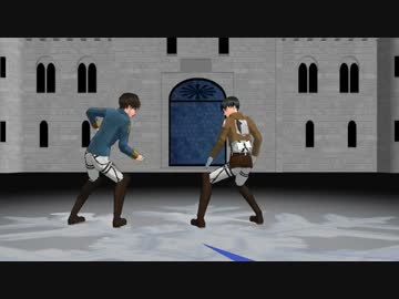【MMD】進撃の巨人エレンとリヴァイで、おこちゃま戦争【固定カメラ】