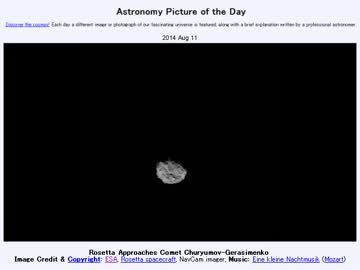 2014年 8月11日 「チュリュモフゲラシメンコ彗星に接近するロゼッタ」-APOD