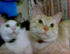 揃って同じ方ばかり見る猫。