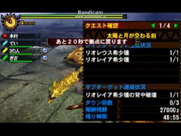 【MH4効率】太陽と月が交わる刻 飯タルG抜き 01'04"86