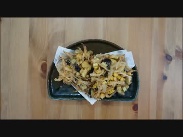 おうちで作る茄子とコーンのかき揚げ