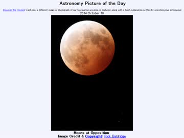 2014年 10月10日 「太陽の反対側に来ていた衛星」-Astronomy Picture of the Day