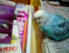 テーブルの上で遊ぶインコたん。