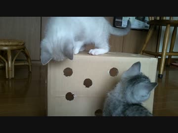 実家の車庫で保護した子猫 穴あきダンボールで遊んでいたらBBA様乱入!