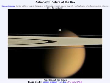 2014年 11月2日 「環の向こうにみえるタイタン」-Astronomy Picture of the Day