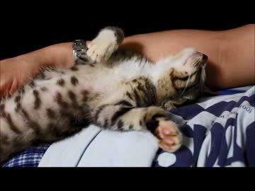 肉球を触られても起きない子猫。