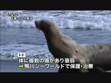 九十九里浜で保護のトド 水族館で公開