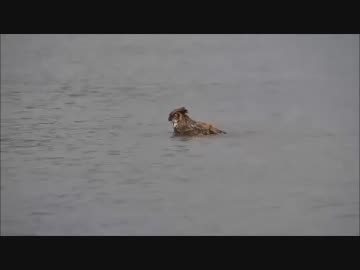 ミシガン湖を泳ぐミミズク