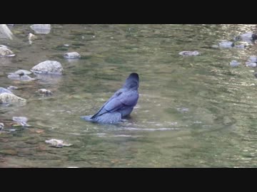 カラスの水浴び