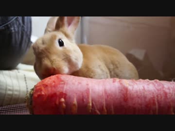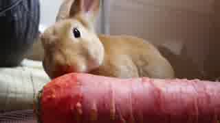 うさぎに金時人参を与えたところ。
