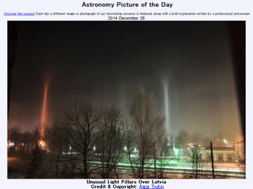 2014年 12月28日 「ラトビアの珍しい光柱」-Astronomy Picture of the Day