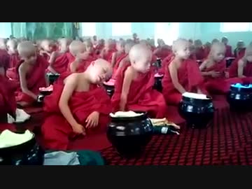【ミャンマー仏教】少年僧たちが読経中に居眠りする