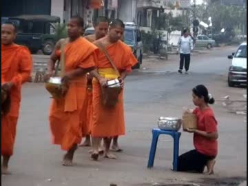 【ラオス仏教】僧侶の托鉢風景