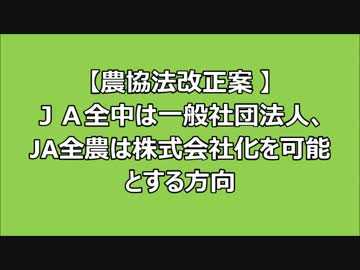 【農協法改正案 】JA全中は一般社団法人、JA全農は株式会社化の方向