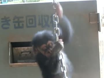 鎖を登るチンパンジーの子供