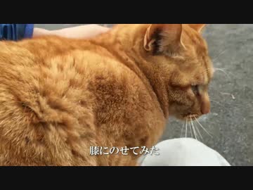 【公園猫戦争】茶トラ猫兄弟のアホの子、膝の上で兄弟の危機を見守る