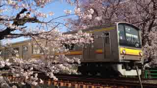 南武線と桜 (二ヶ領用水にて)