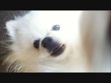 「撮らないで!」前脚で器用にカメラを避けようとする白ポメ14ケ月♂
