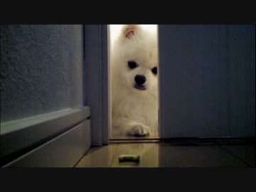 盗み食い?オヤツに手が届きそうで届かない。白ポメ14ヶ月♂