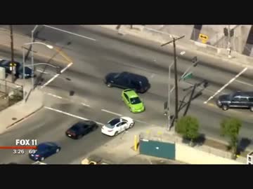 盗まれた緑プリウスタクシーを追跡、LAPDのSUVがPIT maneuver(米 04/10)