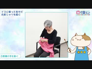 【介護テレビ】イスに座って自分で丸首シャツを脱ぐ(介護の仕方)