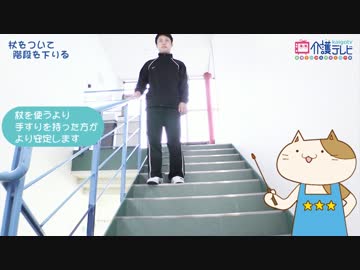 【介護テレビ】杖をついて階段を下りる 介護の仕方