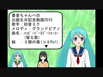 【3個の苺】初音ミク+ピアノ 香音ちゃんへのHappy birthday to you 2015