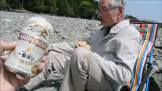 おじいちゃんと、川原でハンバーガーを作って食べたよ!