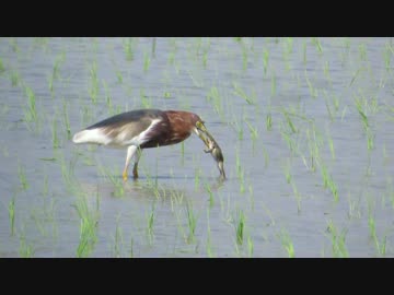 珍鳥・アカガシラサギが巨大カエルを一飲!!