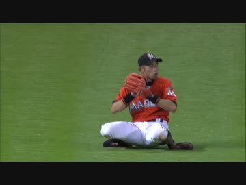 イチロー、しゃがんでボールをキャッチ