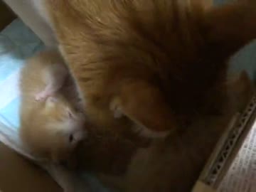 子猫のトイレの世話をする義理の父?のココさん