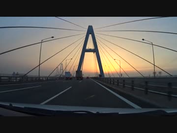 夕暮れの名港トリトンを渡る