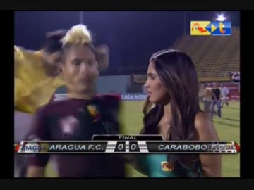試合後のインタビューでファンの飛び蹴りを食らうサッカー選手