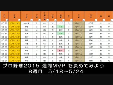 プロ野球2015 週間MVP を決めてみよう 8週目 5/18~5/24