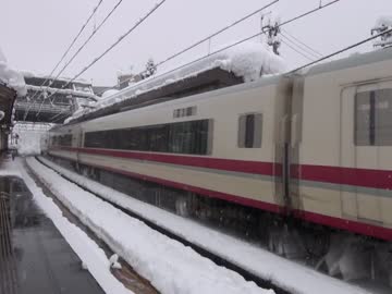 はくたか ミュージックホーン♪ 雪を蹴散らしながら六日町駅を通過