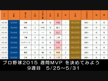 プロ野球2015 週間MVP を決めてみよう 9週目 5/25~5/31