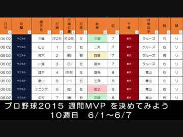 プロ野球2015 週間MVP を決めてみよう 10週目 6/1~6/7