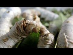 カイコの幼虫、桑の葉を食べる様子