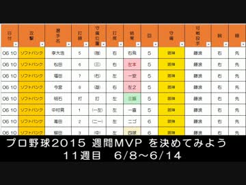 プロ野球2015 週間MVP を決めてみよう 11週目 6/8~6/14