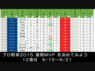 プロ野球2015 週間MVP を決めてみよう 12週目 6/15~6/21