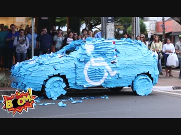 【公開処刑】障害者用スペースに駐車してる車にイタズラ