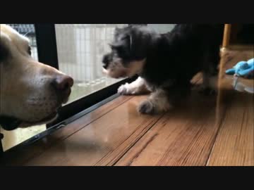 子犬のミニシュナとラブラドール・レトリーバー