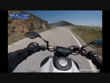 バイクがトラックと正面衝突する瞬間