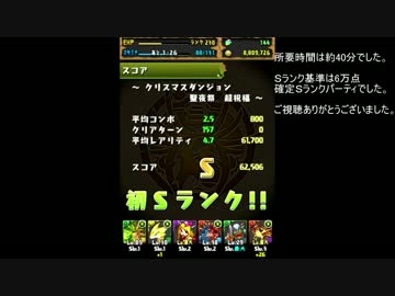 確定Sランク【クリスマスダンジョン】Sランク獲得画面 パズドラ