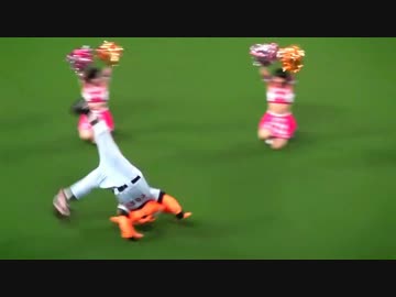 ドアラさんvsジャビィ (ジャビット333) バク転対決 150705 中日 巨人戦