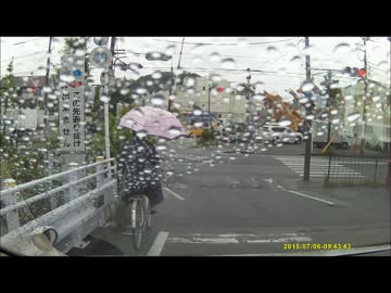 【交通】傘さし運転の自転車が信号無視の車に轢かれる【事故】