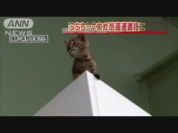また「崖っぷち」ネコ・・・高速道路の橋脚にうずくまる