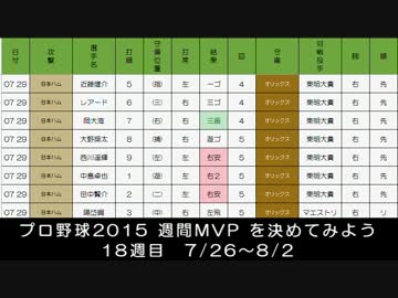 プロ野球2015 週間MVP を決めてみよう 18週目 7/27~8/2